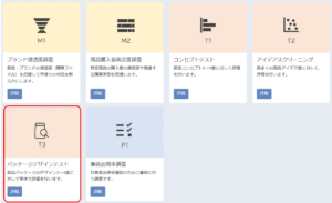アンケートテーマから「パッケージデザインテスト(T3)」を選択します。